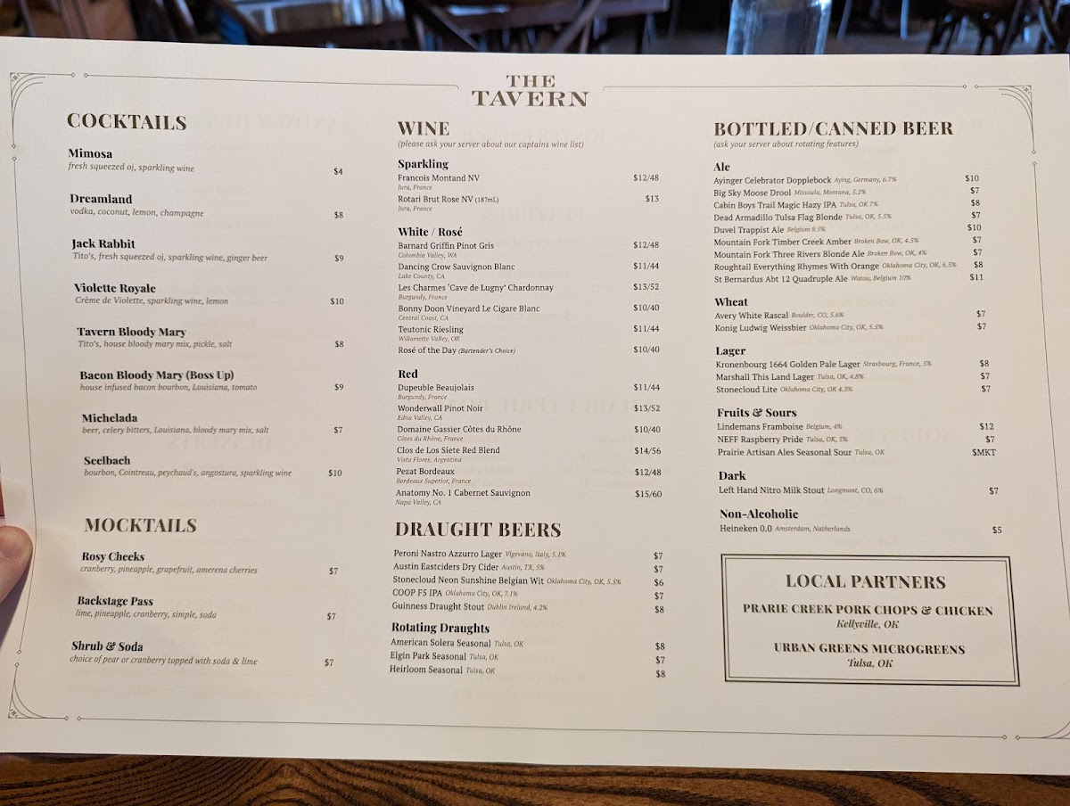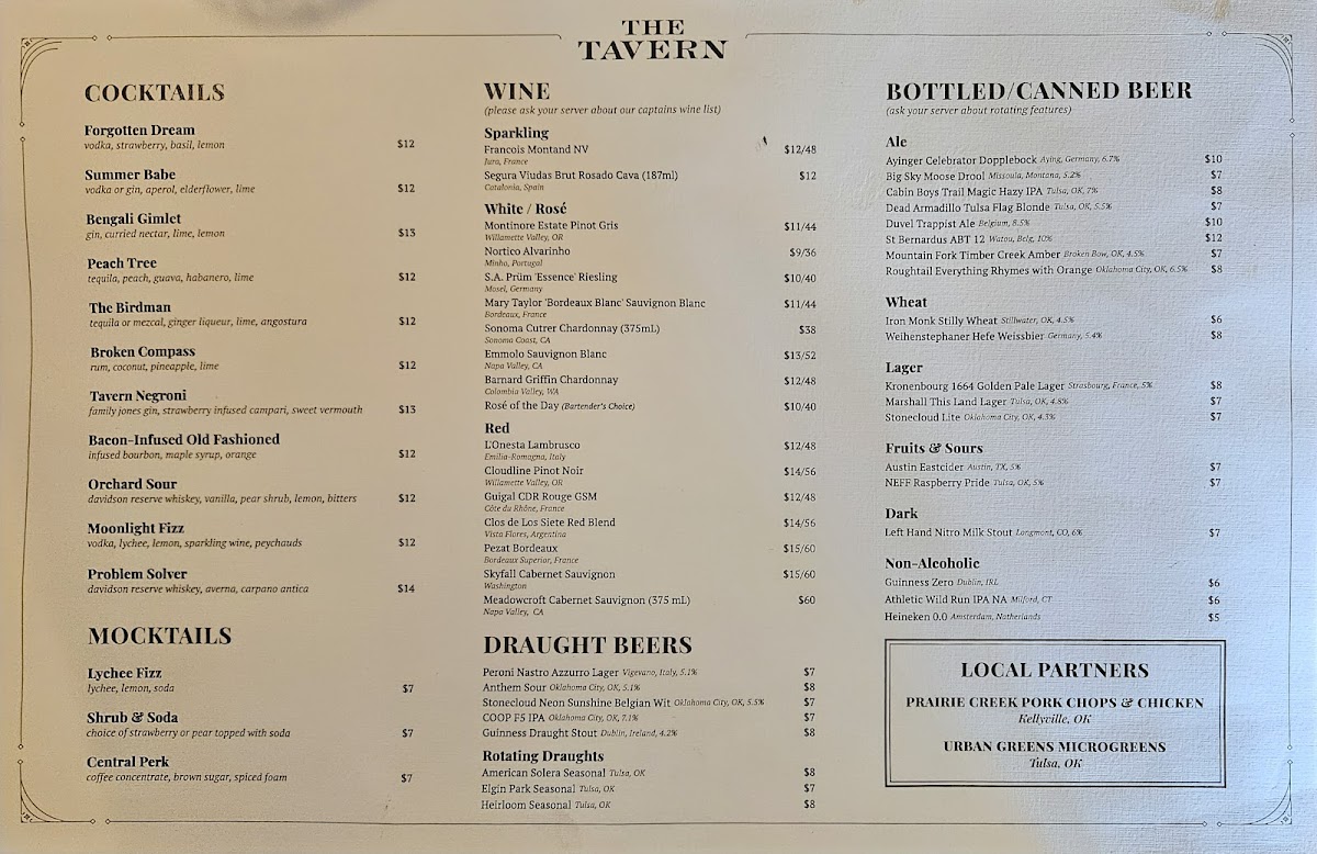 At The Tavern Menu, you'll find a selection of dishes that are as satisfying as they are diverse. Located at 201 N Main St in Tulsa, OK, this cozy spot offers everything from classic comfort foods to exciting new flavors that keep things fresh and interesting. Whether you're in the mood for a hearty meal or something lighter, there's something for everyone. Each dish is crafted with care, using quality ingredients that bring out bold flavors. Whether you're grabbing a quick bite or settling in for a leisurely meal, The Tavern Menu provides a welcoming atmosphere where great food is always the star. With every visit, you can expect a new experience, as the menu combines timeless favorites with fresh twists.